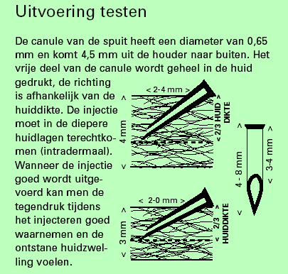 De uitvoering van een tuberculinatie staat weergegeven in onderstaande afbeelding: