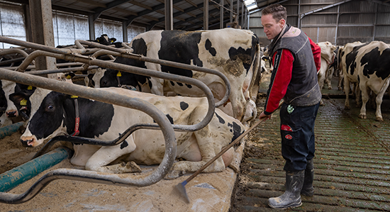 Het melkveebedrijf van Mts. Melkveehouderij Verhoef in Den Hout ligt er strak bij. De 185 melkkoeien in de ligboxenstal staan er tevreden bij, vretend aan het voerhek of lekker liggend in de boxen. De voergang is keurig aangeveegd en de boxen fris opgestrooid. Hygiëne is hier vast onderdeel van het management, dat is duidelijk. “Klopt”, reageert bedrijfsopvolger Maarten. “Ik doe mijn best om alles netjes bij te houden.”