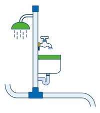 Checkpunt 3: Is de douche aangesloten op leidingwater of een eigen bron van geschikte kwaliteit?